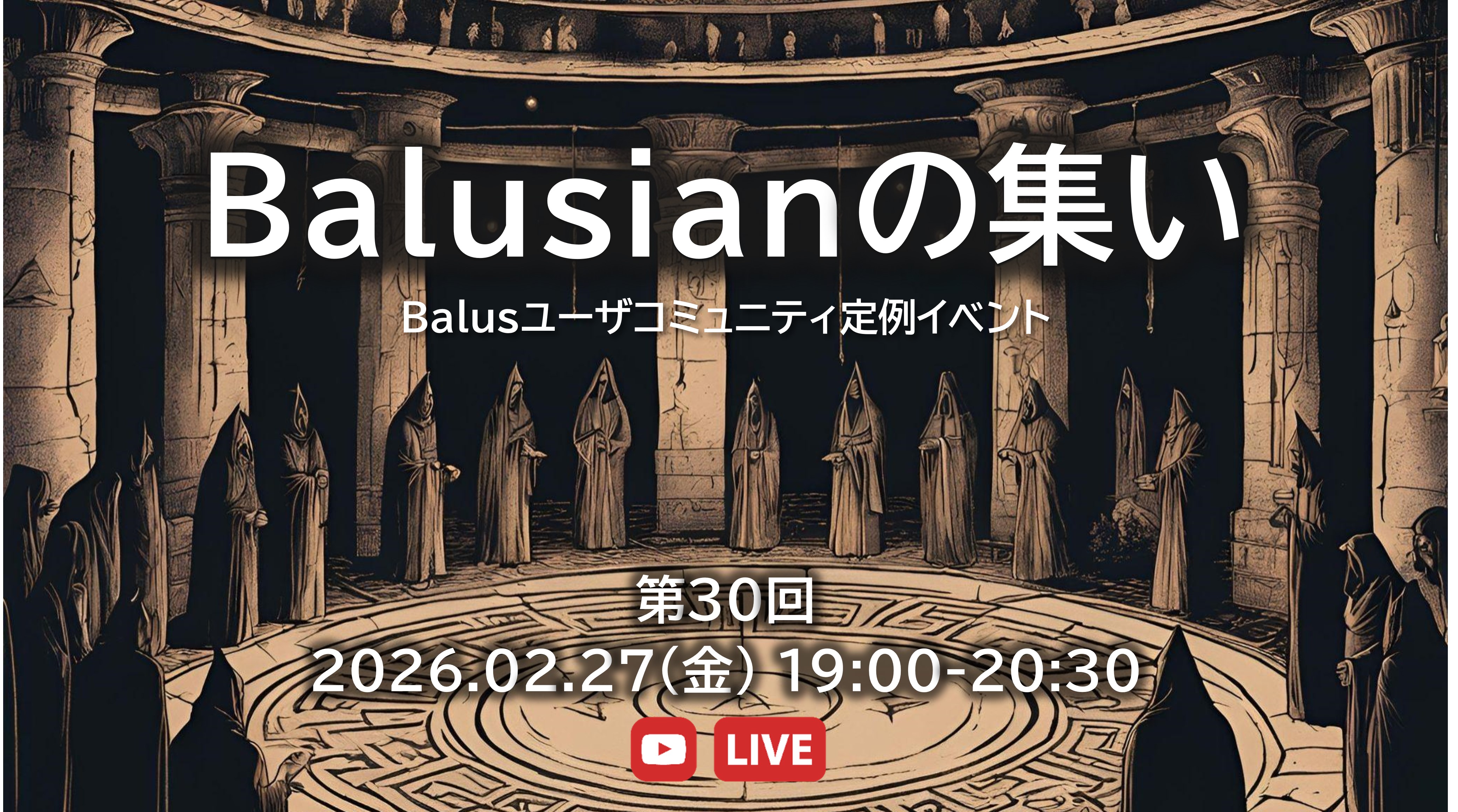 Balusユーザコミュニティのメンバーが集まって意見交換や事例紹介などを行うミートアップイベント「Balusianの集い」の第30回目を開催します。